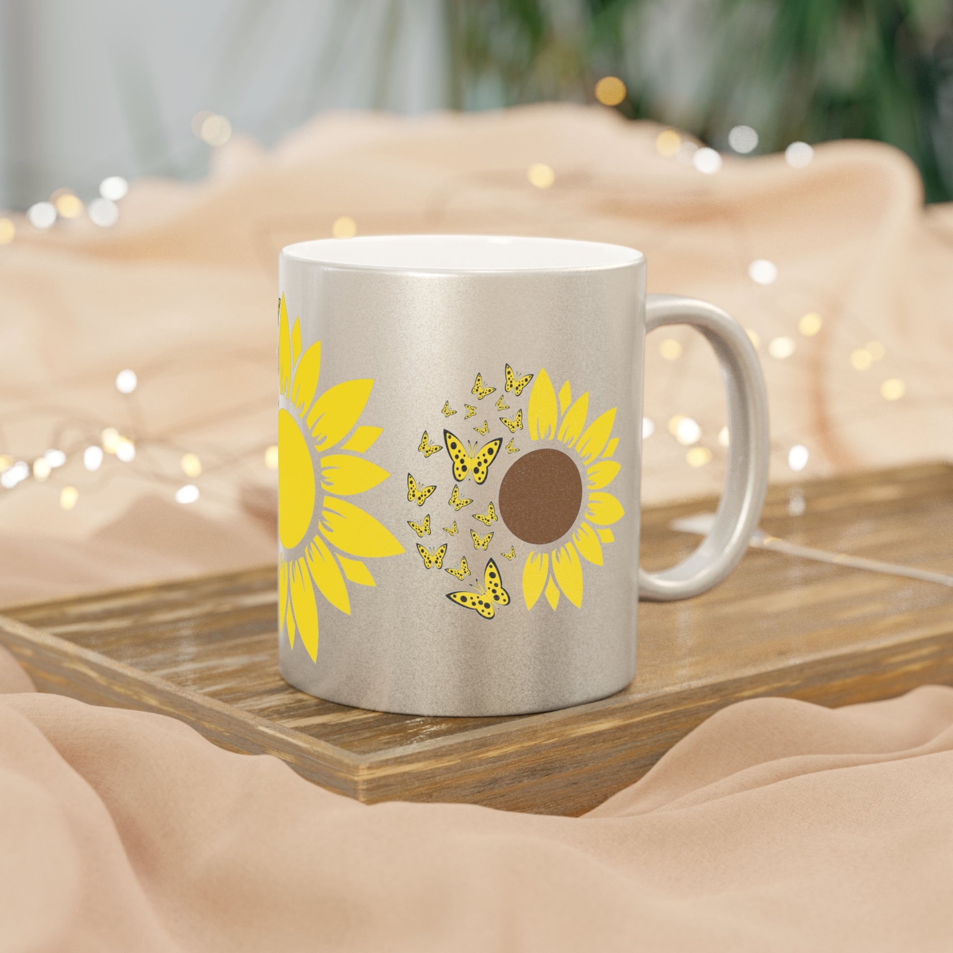 Personalized metallic coffee mugs are the perfect way to begin or end your day. These 11oz mugs are made with ceramic material that can be coated with either a Gold or a Silver coating for extra flashy looks. Add your own designs on either one or both sides and bring your favorite mug to life. NOTE: Black designs will print the best due to the nature of the coating. White will be completely transparent.